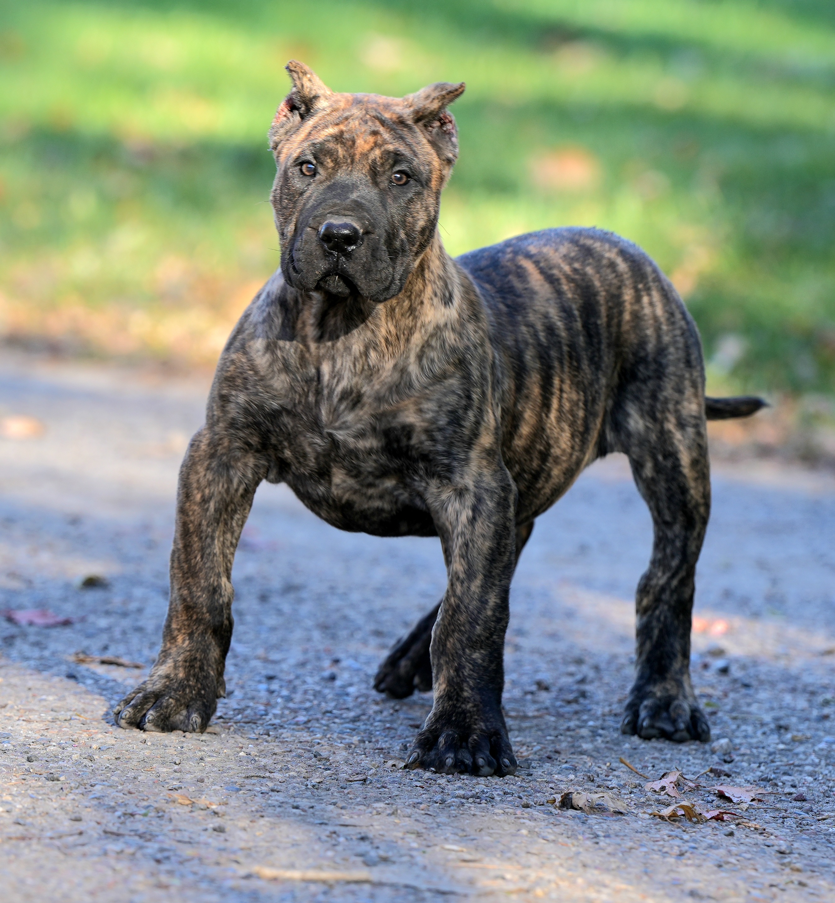 Our program follows the 2001 Presa Canario breed standard, which emphasized larger, more powerful dogs with strong type and presence. Many of the legendary dogs that shaped the breed's reputation worldwide were produced under this standard. Today, our dogs remain larger than what is commonly seen under the current standard. Our females start around 110 pounds, while our main stud male reaches 172 pounds in athletic condition. Despite their size, our dogs maintain correct structure, balanced movement, and the natural guardian instincts that define the Presa Canario.